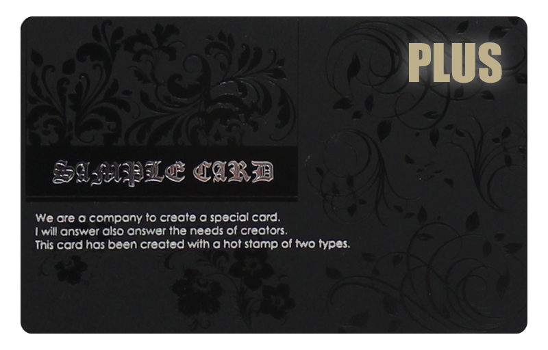 マットブラックカードは、カードの基材(材料)が黒くなります。PLUSカードは基材は黒ではありませんが、黒に見えるようにしています。